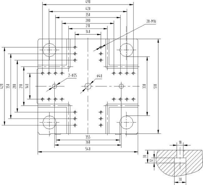 模板正面尺寸 PLATEN DIMENSIONS